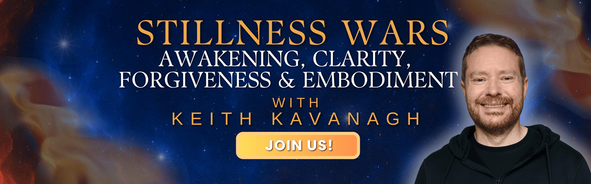 Awakening is not complex. What complicates it is the mindâs resistance to how simple it actually is. Keith Kavanagh invites you into an uncompromising, direct experience of awakening, forgiveness, and embodiment beyond effort, seeking, or spiritual âdoingâ with his 4-part live series:  Stillness Wars: Awakening, Clarity, Forgiveness & Embodiment. Youâll learn: awakening as a noticing, not an achievement; the traps that appear immediately after realization; forgiveness as a complete shift in purpose, not self-improvement; and embodiment as the natural flowering of awakening in lived experience. If you're ready to end the conflict between the simplicity of truth and the mindâs need to manage and control it, join us, starting February 2nd.