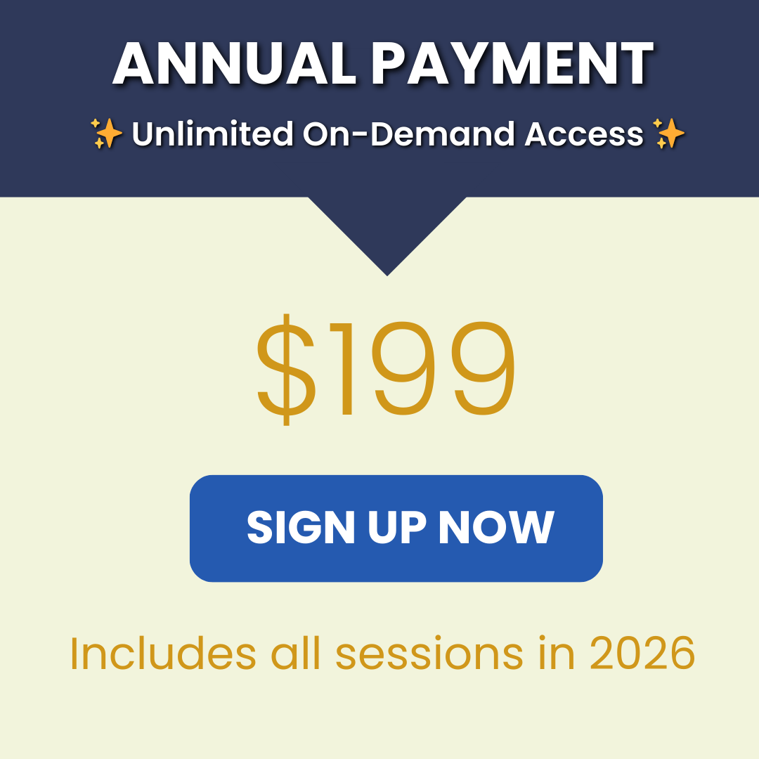 âď¸Â  Access to ALL weekly & monthly sessions for the entire year (including past sessions)